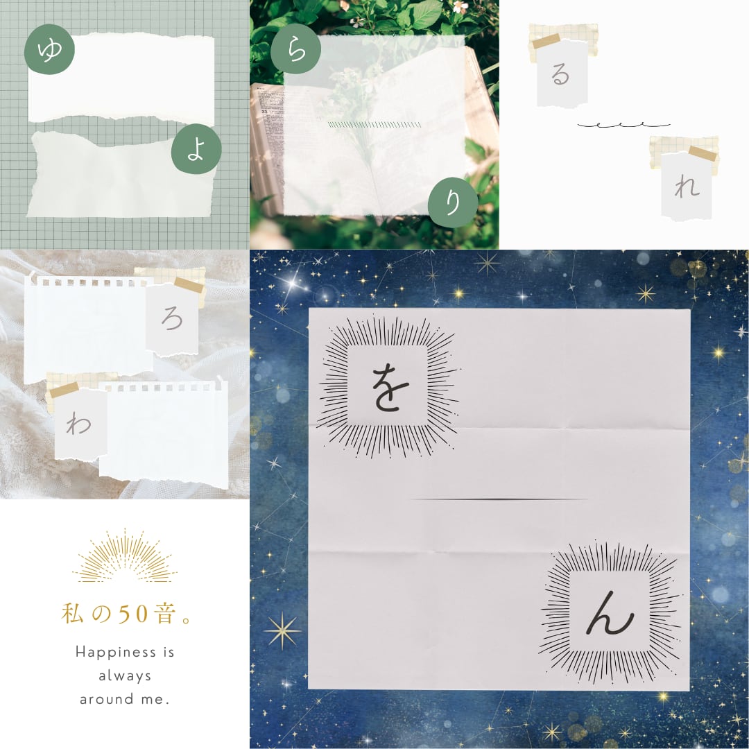 ※「を」「ん」はページ数の都合上、デザインに含まれておりません。ご了承くださいますよう。